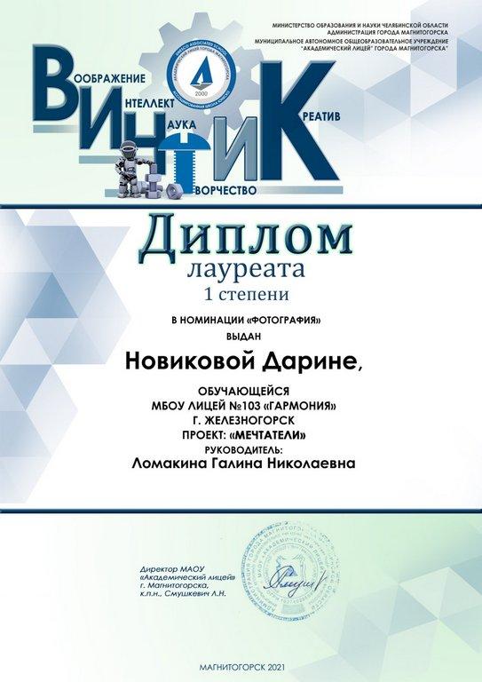 Ученицы 6 «Д» под руководством Галины Николаевны Ломакиной стали победительницами ряда творческих конкурсов. Дарина Новикова - лауреат I степени Виртуальной галереи научно-исследовательских, технических, творческих проектов «ВИНТИК», организованной Академическим лицеем г. Магнитогорска при поддержке администрации г. Магнитогорска и Министерства образования и науки Челябинской области. Татьяна Терентьева и Мария Гаврилова – победительницы Всероссийского детского конкурса декоративно-прикладного творчества «Путь к звездам». А Екатерина Парфенова, Татьяна Терентьева и Дарина Новикова обладательницы дипломов победителей Всероссийского детского конкурса рисунков «Безопасная дорога».