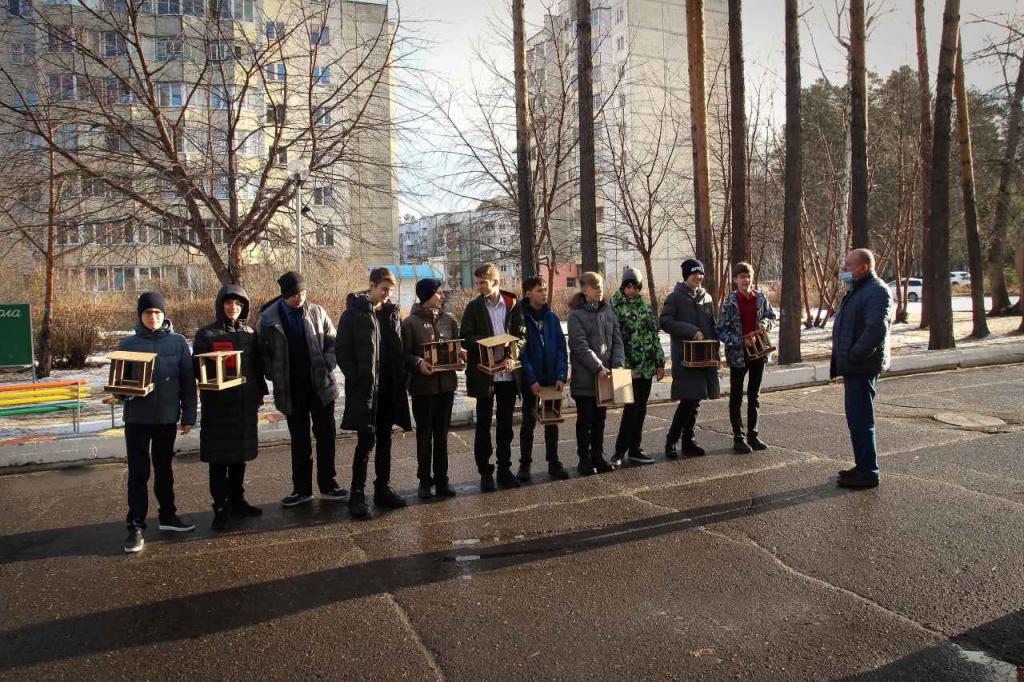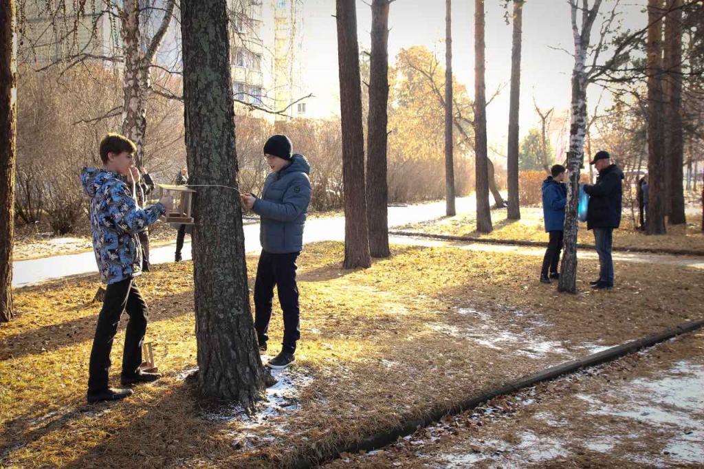 б) Сегодня, 15 ноября, наши ученики 7 "М" класса на уроке труда развешивали кормушки на территории школы, а также наполняли их вкусной и полезной крупой. Молодцы!