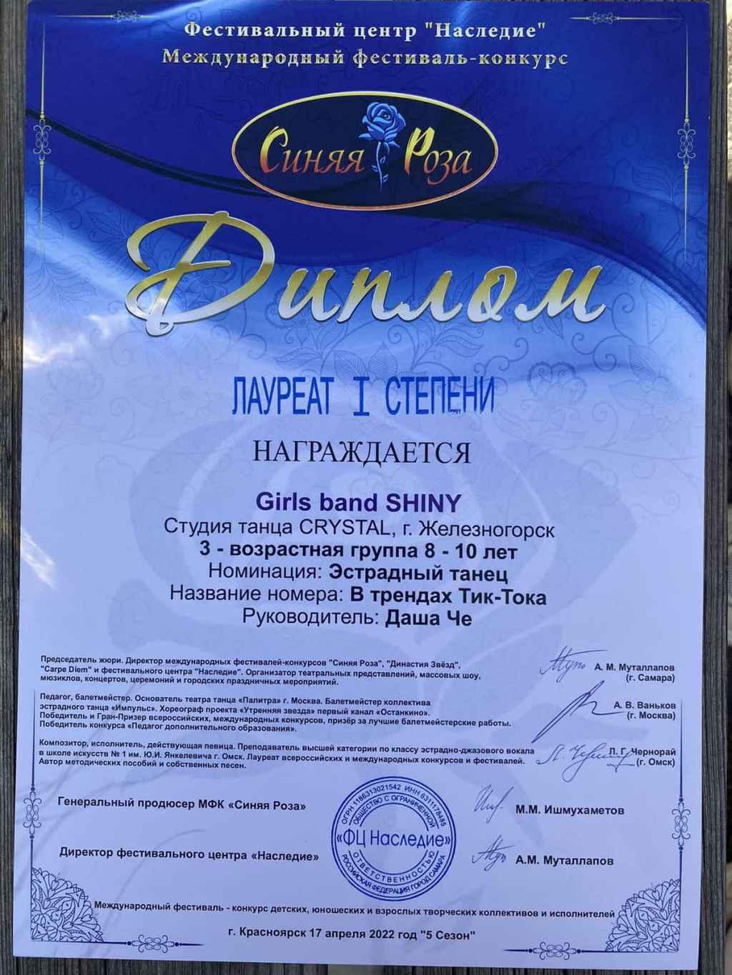 21.04.202217 апреля в городе Красноярске состоялся Международный фестиваль-конкурс "Синяя роза".