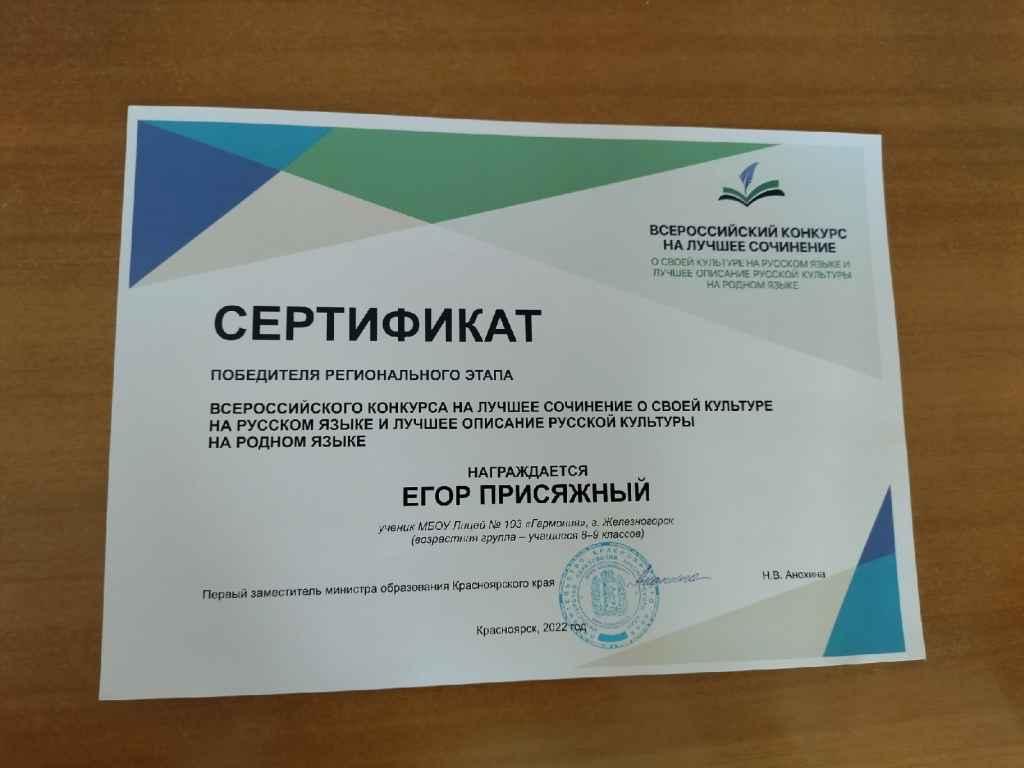 Егор Присяжный - Победитель регионального этапа