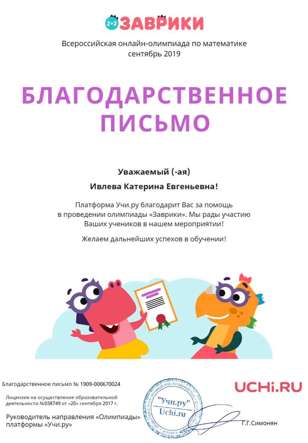 В сентябре проходила Всероссийская олимпиада Заварики по математике для 1ых классов.