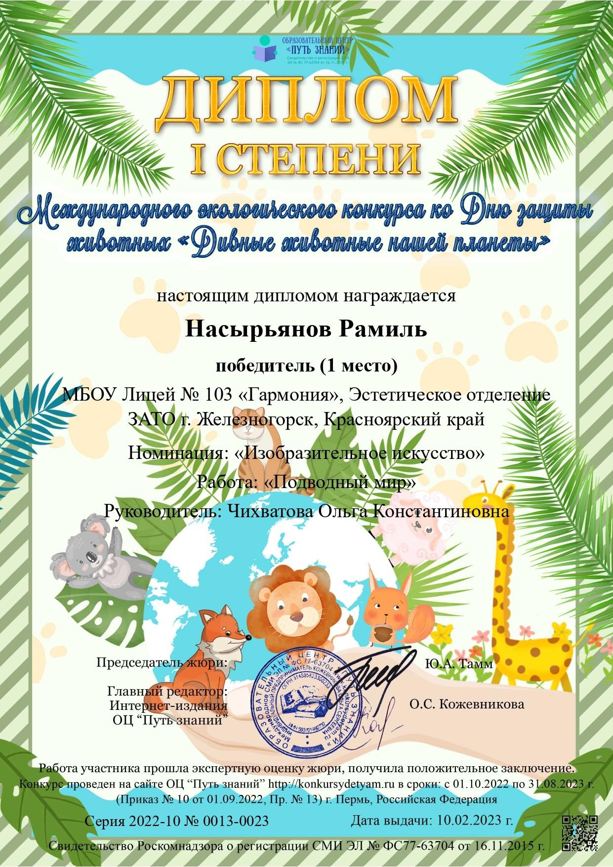 Итоги международного экологического конкурса ко Дню защиты животных «Дивные животные нашей планеты»: