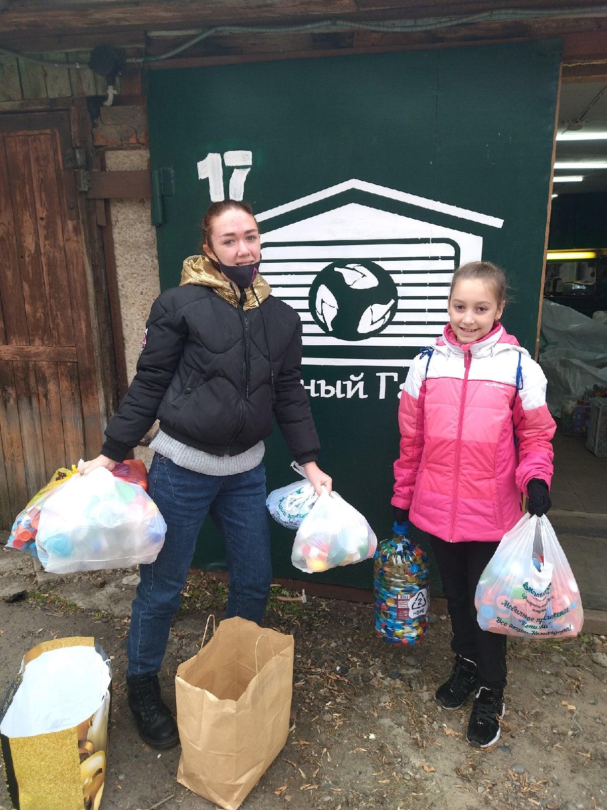 Хорошие новости! Во время осенних каникул первая партия Добрых крышечек была доставлена в "Зеленый гараж".