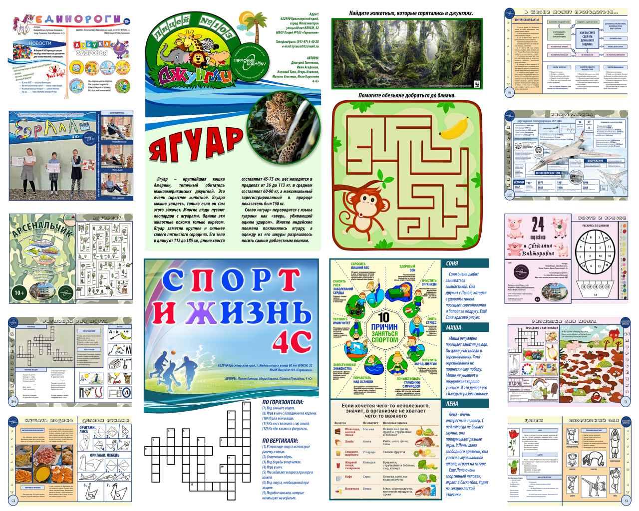 Газет этих - шесть и все они разные: ребята сделали издание о животных с названием «Джунгли Лицея №103», мужской журнал о военной технике «Арсенальчик», две газеты обо всем «Ералаш 4С» и «Единороги». Завершает список издание с оригинальным названием «24 поросенка и Светлана Викторовна».