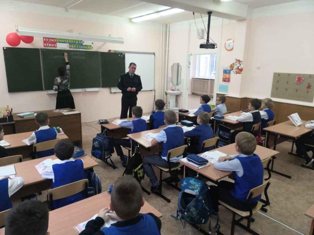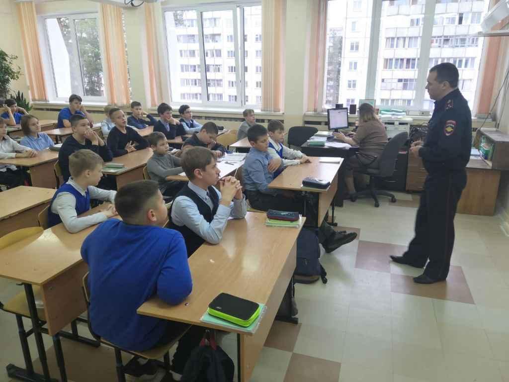 На встречу к лицеистам пришел сотрудник ГИБДД Сергеев Евгений Андреевич - госинспектор БДД ОГИБДД УМВД России по ЗАТО г. Железногорск. Евгений Андреевич рассказал о правилах безопасного перехода проезжей части, о необходимости светоотражающих элементов на одежде при нахождении на улице, а также рассказал о правилах безопасного поведения при близко идущем транспорте.