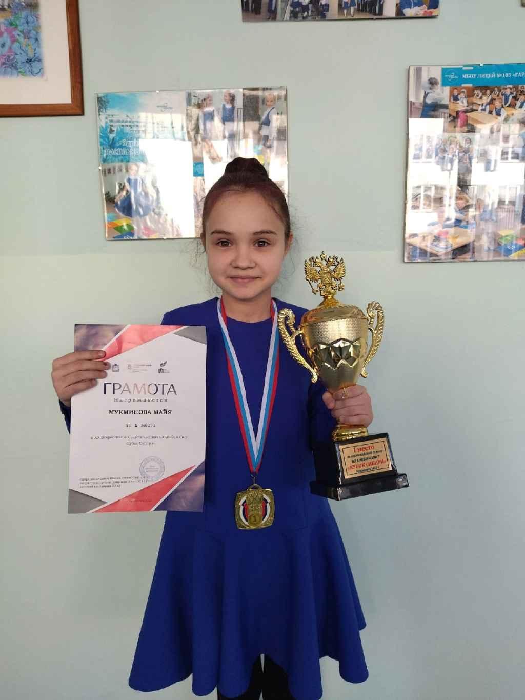 • Наша ученица Майя Мукминова (4 "А" класс, Стойлова Л.Ю.) стала победителей в XX Всероссийских соревнованиях по кикбоксингу "Кубок Сибири" (спортивная дисциплина - поинтфайтинг, девушки 2010-2011 г.р.). Поздравляем!