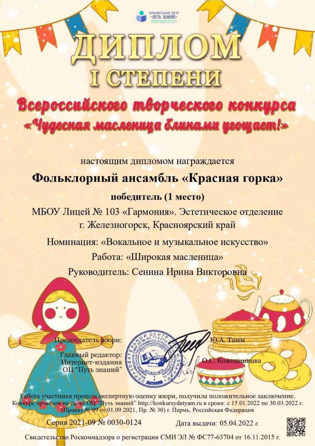 2. Ансамбль "Красная горка" под руководством Ирины Викторовны Сениной принял участие во всероссийском творческом конкурсе «Чудесная Масленица блинами угощает»