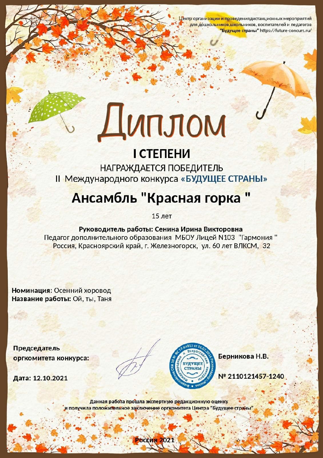 16.11.2021Участницы коллектива "Красная горка" стали победителями II Международного конкурса "Будущее страны"
