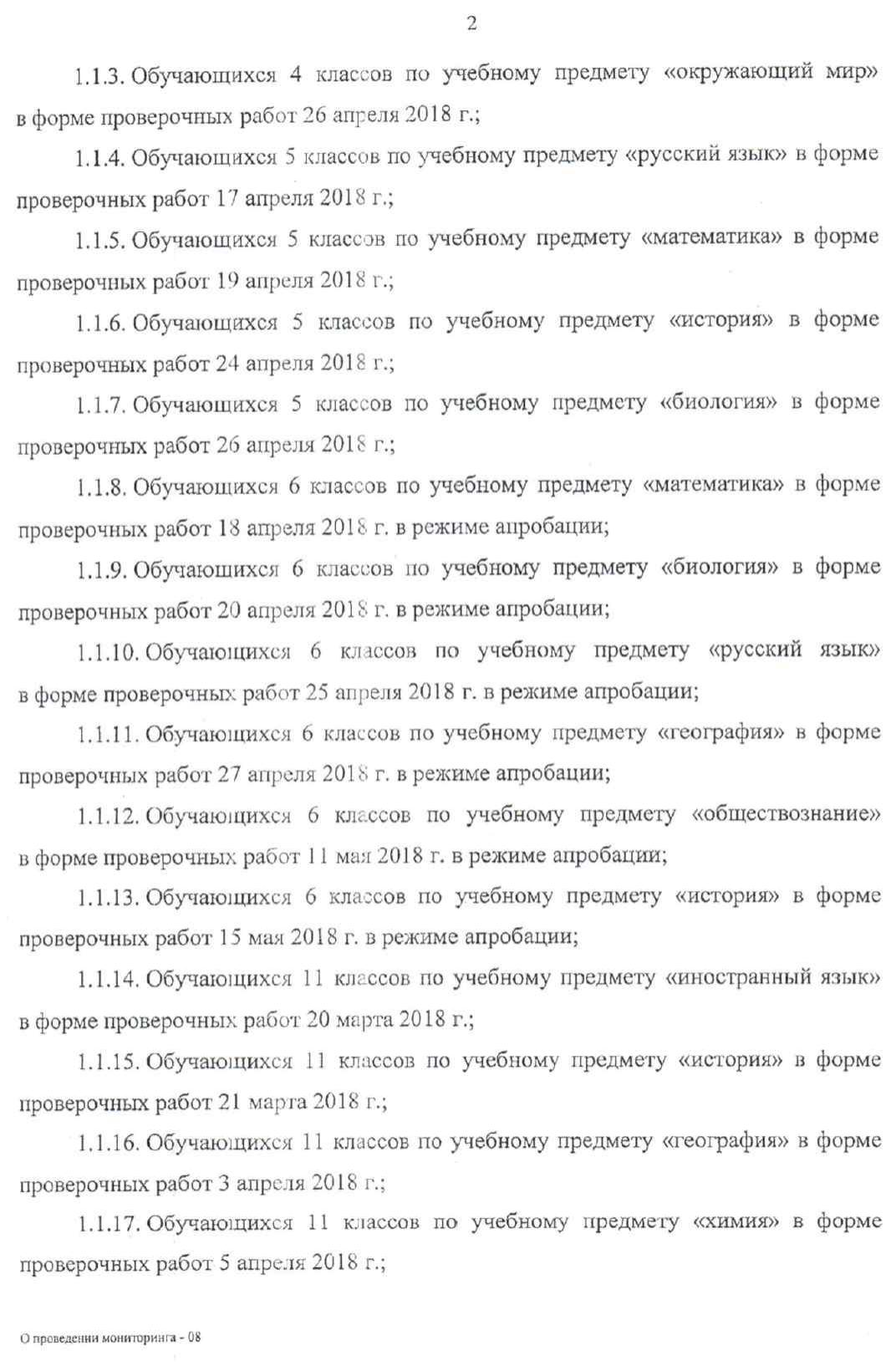 Приказ о проведении мониторинга качества образования