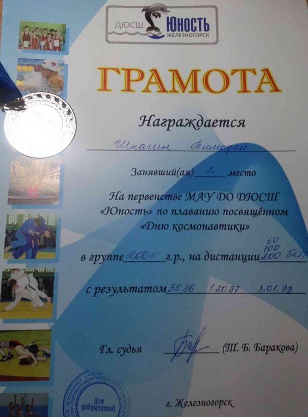 2 место среди юношей - Шпагин Тимофей, ученик 6Л класса