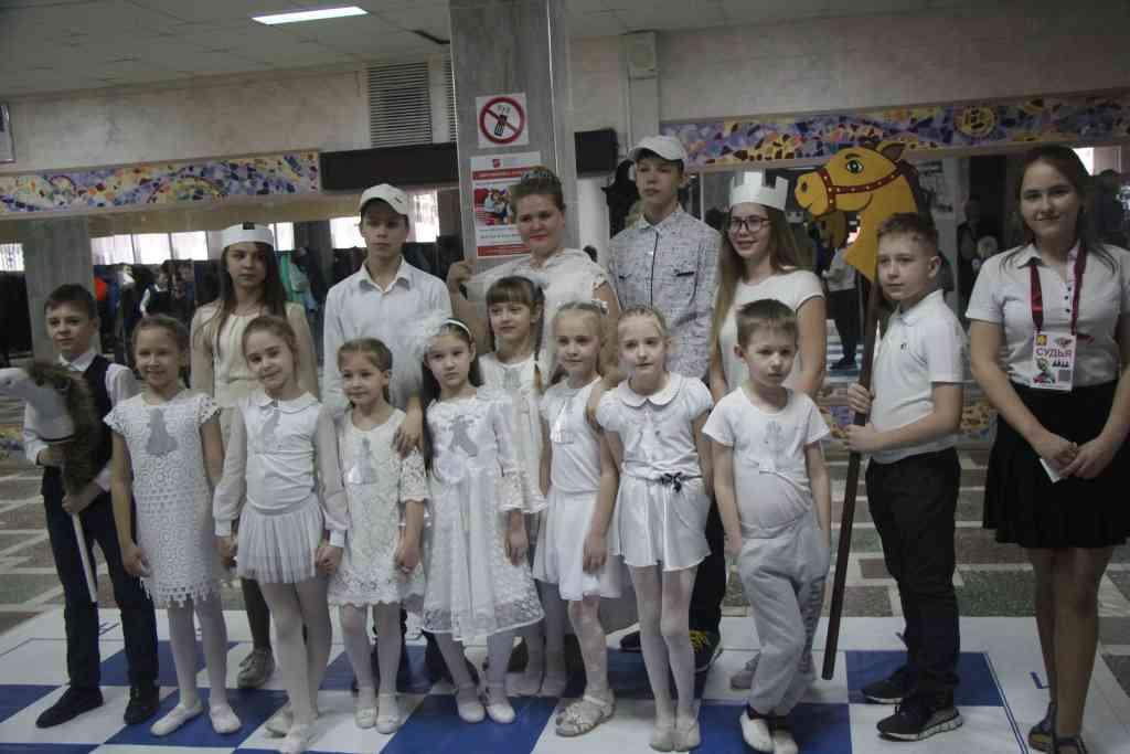 Впрочем, шахматы получились реально живыми. Пешками были первоклашки, коней изображали мальчики постарше с милыми лошадками на палочке, ладьями были девушки со шляпами-башенками… А управляли командой черных и белых Иван Парфёнов и Алиса Шаститко, ученики Лицея №103 и очень серьезные шахматисты.