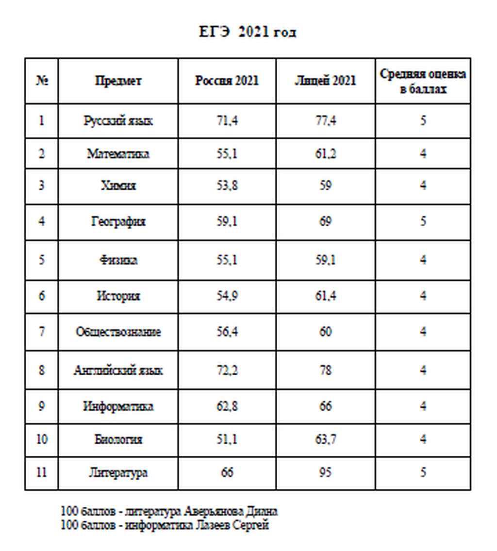 Результаты ЕГЭ-2021