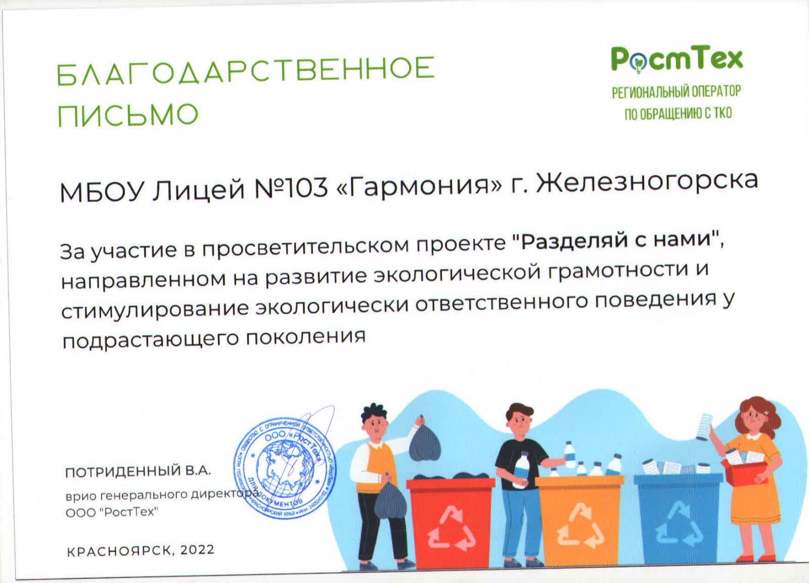 С 15 по 25 ноября в Лицее прошла просветительская акция по раздельному сбору отходов.