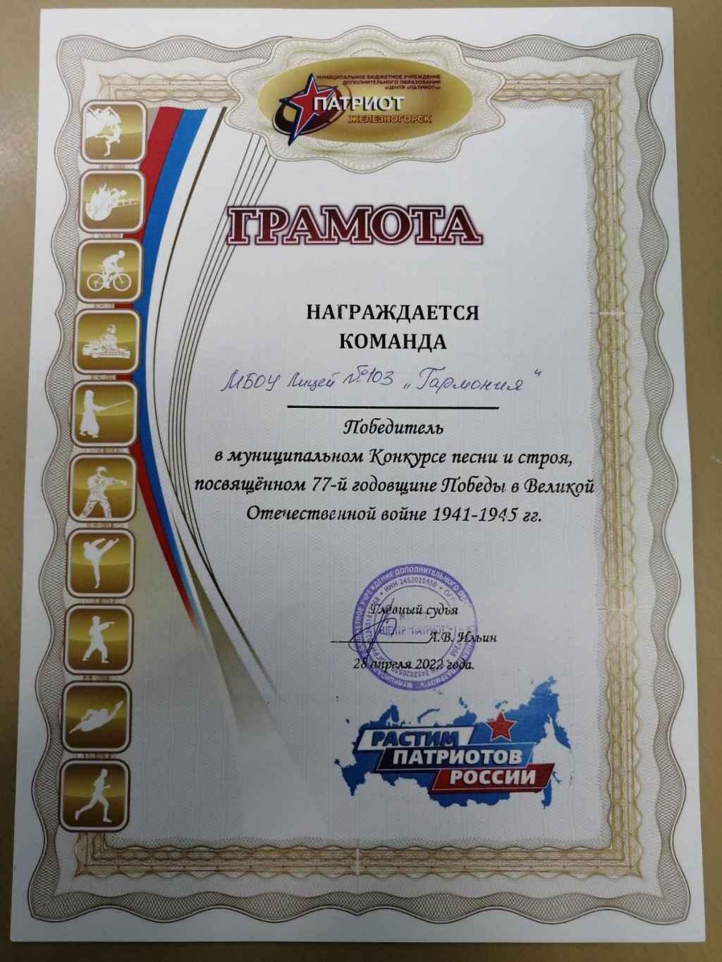 29.04.2022В Железногорске прошел городской конкурс песни и строя, посвященный 77-й годовщине победы в Великой Отечественной войне.