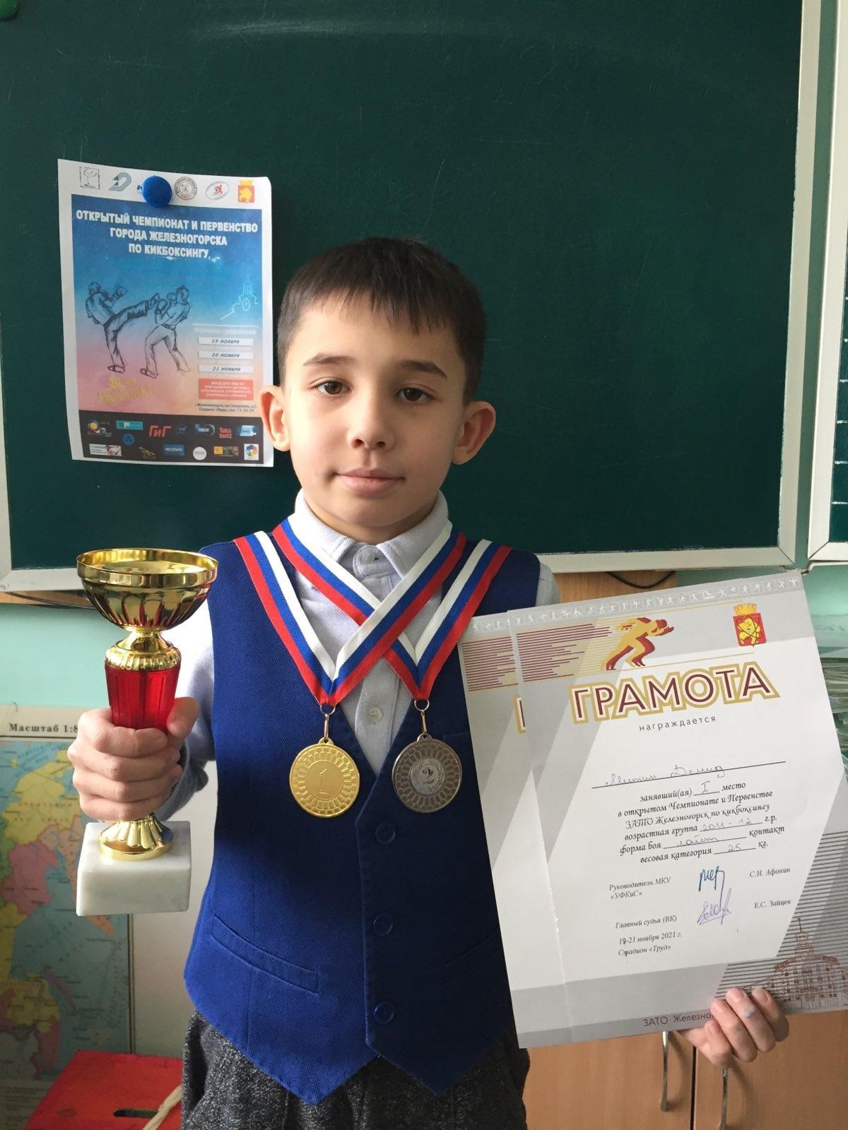 • Митин Демид (2 «М», кл.рук. Зайцева Ирина Валерьевна) занял 1 и 2 место (категории лайт контакт и поинтфайтинг контакт)